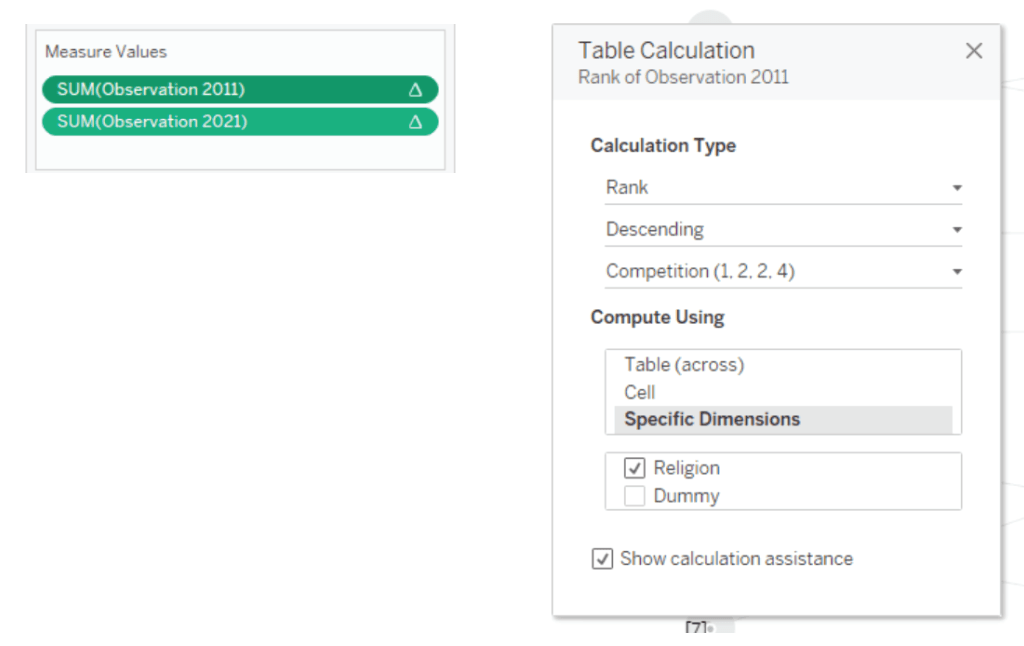 All three views should be easy to decipher, so please explore each in the workbook. In case it isn’t apparent, the view that shows the rank uses a rank table calculation on the measures for the 2011 and 2021 membership counts.