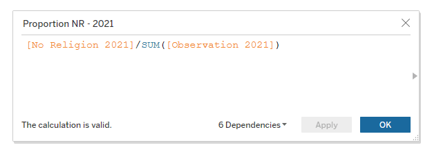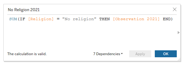 - A range to explore the distribution of people with no religious affiliation in 2021